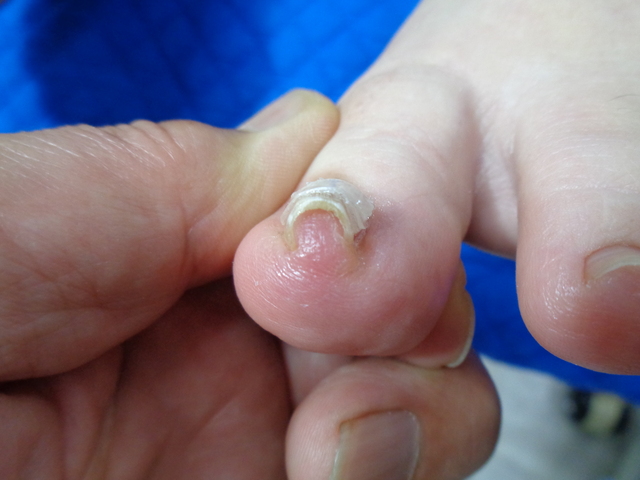 曲がりの強い方 2025/7/16 とても曲がりの強い方が来院しました 3回スパンゲ(爪を矯正する為のプラスチックの板)が折れてしまいましたが爪の片側にミルフィーユの様に層を作りやっと貼ることが出来ました